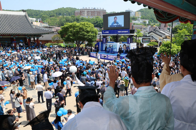 이 후보는 이날 경북 안동 동부동 웅부공원에서 진행한 유세에서 “저는 안동에서 태어났고, 안동 물을 먹고, 안동 쌀을 먹고, 안동 풀을 먹고 자랐다. 선대들도 다 여기 묻혀계시다. 고향은 저의 출발점이자 종착점”이라며 지지를 호소했다. 안동 유세 현장에는 이 후보의 초등학교 시절 은사인 박병기 선생이 무대에 올랐다. 또 이 후보의 종친인 경주 이씨 문중 관계자도 현장을 찾았다.