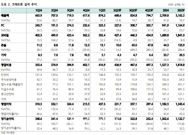 크래프톤의 올해 연간 매출액은 전년 대비 16.7% 증가한 3조1622억원, 영업이익은 13.6% 늘어난 1조3434억원을 기록할 것으로 봤다.