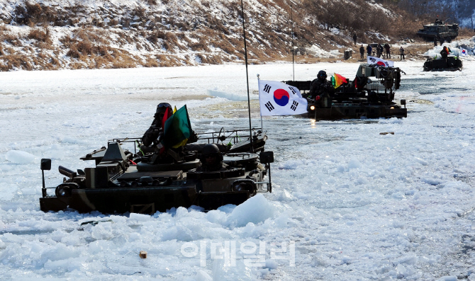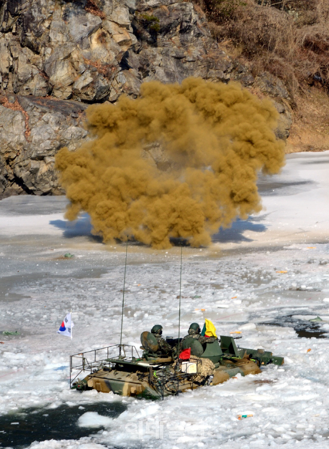 이날 훈련에는 11기계화보병사단 예하 기계화대대 및 공병, 전차, 항공부대 등 6개 부대가 참가했다. K-21과 K-200 장갑차로 편성된 선두부대가 얼어붙은 하천을 먼저 건너 후속 전차부대의 도하를 지원하는 상황을 가정해 진행됐다.
