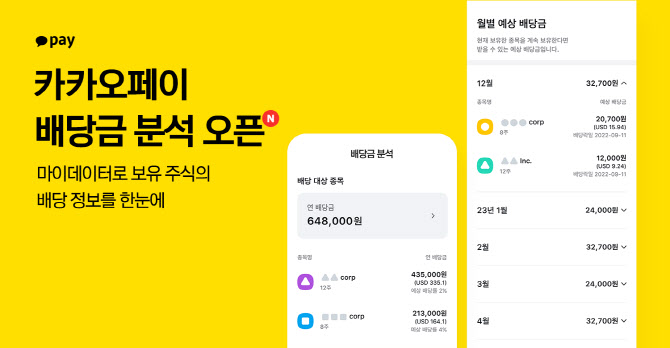 카카오페이는 이번 미국 주식 배당금 분석을 시작으로, 곧 국내 주식 배당금 분석으로 서비스를 확장하고 배당락일 임박 종목 알림과 같은 편의 기능을 추가하는 등 지속적으로 고도화를 진행할 방침이다.