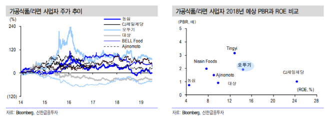 다만 홍 연구원은 “점유율 정체가 지속하면 가격 인상은 검토할 수 있는 옵션”이라며 “약 7%의 가격 인상은 오뚜기에게 10% 이상의 이익 증가를, 산업에는 출혈 경쟁 완화라는 신호를 부여한다”고 말했다.