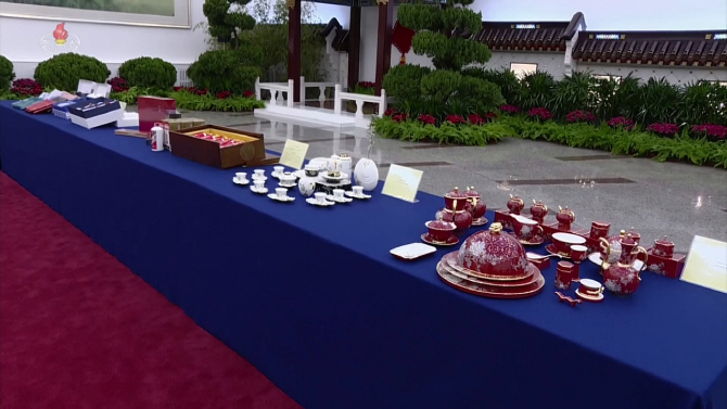 | | 북한 조선중앙TV는 29일 김정은 노동당 위원장의 중국 방문 영상을 공개했다. 사진은 시진핑(習近平) 중국 국가주석이 김 위원장을 위해 준비한 선물의 모습 (사진=연합뉴스) |