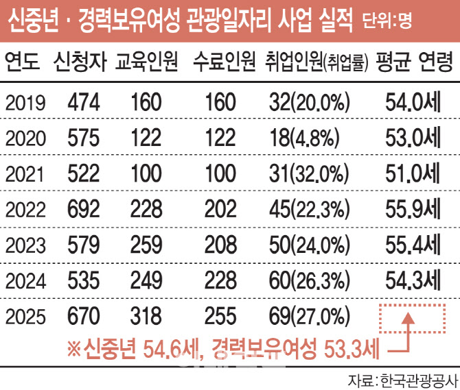 이 같은 구조적 인력난 완화를 위해 정부는 2023년부터 ‘신중년·경력보유여성 관광일자리 사업’을 운영하고 있다. 노동집약적인 산업 특성에 맞춰 현장 경험과 실무 능력을 갖춘 인재의 관광업계 유입을 늘리기 위한 정책이다. 이 사업을 통해 2023년과 2024년 2년간 전국 8개 지역에서 1340명이 교육을 이수, 이 가운데 150여 명이 관광 관련 기업과 기관에 재취업했다.
