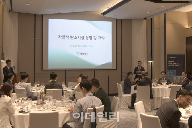 이번 세미나에서는 하나증권의 실제 투자 사례를 통해 자발적 탄소배출권 비즈니스에서 발생할 수 있는 리스크와 이슈 등을 공유하고 논의하는 시간을 가졌다. 주요 참석자는 세계은행그룹 산하 국제투자보증기구(MIGA), 주한미국대사관, 시카고상품거래소(CME)그룹 및 주요 대기업 환경·사회·지배구조(ESG) 담당자 등이다.