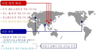 현대모비스 관계자는 "현대차와 기아차의 글로벌 생산체제에 발맞춰 동유럽의 체코와 북미의 조지아 등지에 모듈생산 공장을 착공하고 완성차 및 부품업체를 대상으로 모듈단위의 공급을 적극 추진할 계획"이라고 설명했다.