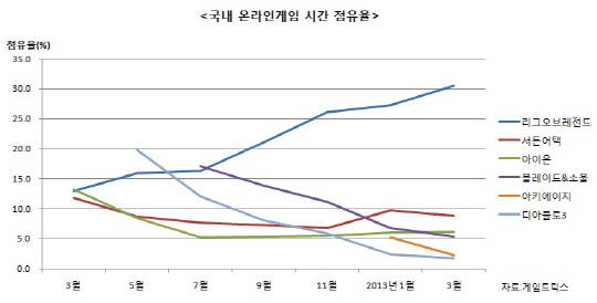 LoL의 돌풍적인 인기 여파로 지난해 국내 기대작인 엔씨소프트의 ‘블레이드&소울’과 엑스엘게임즈의 ‘아키에이지’가 큰 힘을 발휘하지 못하고 있다. 두 게임 모두 출시 초기에는 게임순위 1위를 차지하며 포털사이트 검색순위 상위에 오르는 등 주목을 받았지만 현재는 점유율이 각각 5.4%(블레이드&소울)와 2.3%(아키에이지)에 불과하다.