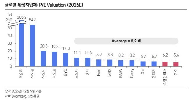 이어 “전기차에서 자율주행, 로봇 사업까지 확장을 추진하는 업체는 전 세계에서 테슬라, 현대차그룹, 중국 전기차(샤오펑·샤오미·화웨이·BYD·리오토) 등 5~6개에 불과하다”며 “2026년에 현대차그룹의 AI 기업으로서의 진전이 반영될수록 현대차의 밸류에이션은은 중국 상위 전기차 수준으로 재평가가 예상된다”고 강조했다.