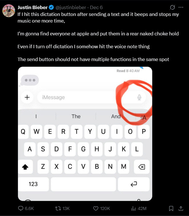 그는 자신의 SNS를 통해 “애플 직원 모두에게 리어 네이키드 초크홀드(뒤에서 목을 조르는 격투기 기술)를 걸고 싶다”고 농담 섞인 표현을 사용하며 이 문제를 언급했다.