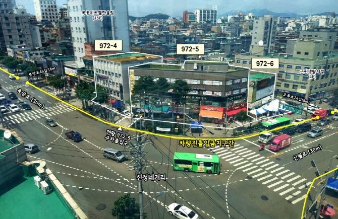 그러나 최근 신정동 972-6번지 일대에 지하 2층~지상 14층의 건물이 들어설 예정인 데다 다른 건물주 역시 공동개발할 의사가 없다는 것이 확실해지면서 공동개발을 해제하고 차량 진·출입 허용구간을 만들어달라는 요청이 있었다.