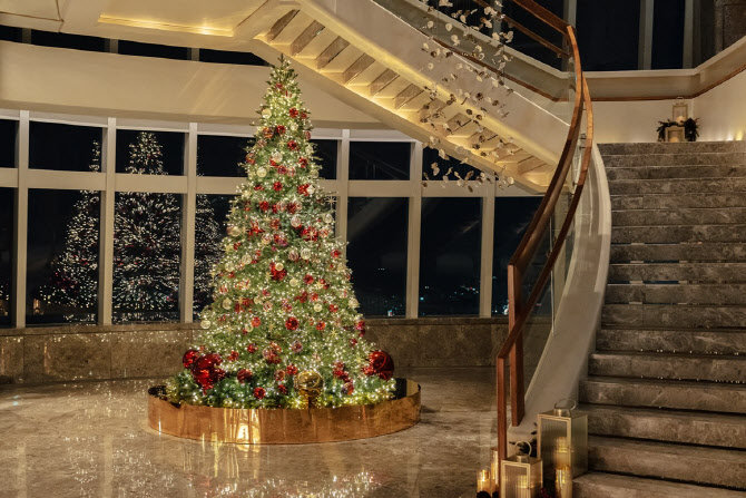 시그니엘 서울은 연말을 맞아 화려한 크리스마스 데코레이션도 마련했다. 79층부터 81층까지 이어지는 웅장한 나선형 계단 입구에는 레드·골드·실버 컬러의 오너먼트와 크리스탈, 금빛 장식이 어우러진 크리스마스 대형 트리를 만날 수 있다.