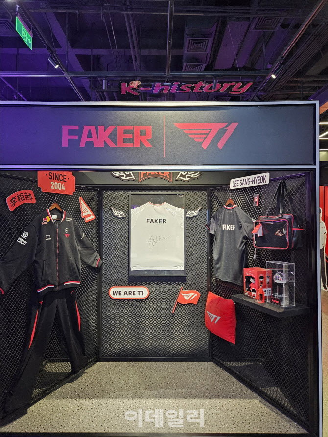 전시관 가운데엔 이상혁과 ‘도란’ 최현준, ‘구마유시’ 이민형, ‘오너’ 문현준, ‘케리아’ 류민석 등 T1 멤버의 사진과 등신대가 설치돼 팬들이 자유롭게 사진을 찍을 수 있도록 했다.