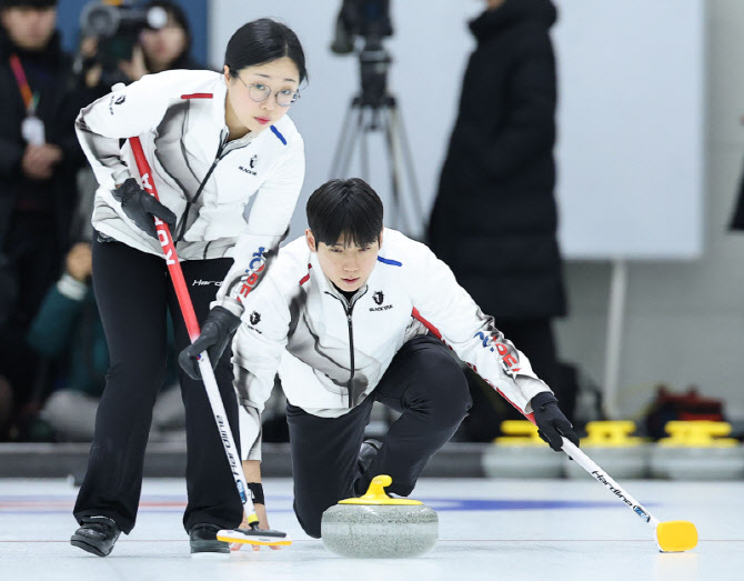 | | 2026 밀라노코르티나 동계올림픽 컬링 믹스더블에 출전하는 김선영, 정영석이 7일 충북 진천선수촌에서 훈련을 하고 있다. 사진=연합뉴스 |