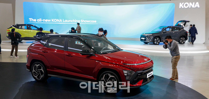 [이데일리 방인권 기자] 현대자동차 코나 2세대 풀체인지 모델인 '디 올 뉴 코나'가 18일 오전 서울 동대문구 동대문디자인플라자(DDP)에 전시되어 있다.