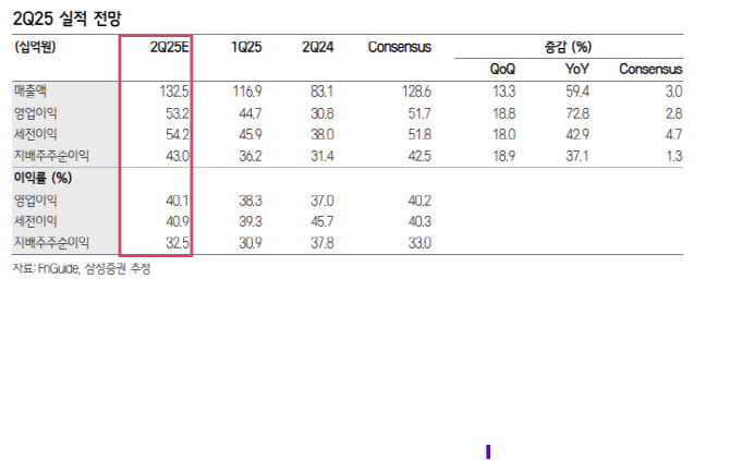 한편 올 2분기 파마리서치의 매출액은 1325억원으로 전년 동기 대비 59.4% 증가하고 영업이익은 532억원으로 같은 기간 72.8% 늘어 컨센서스에 부합할 전망이다.