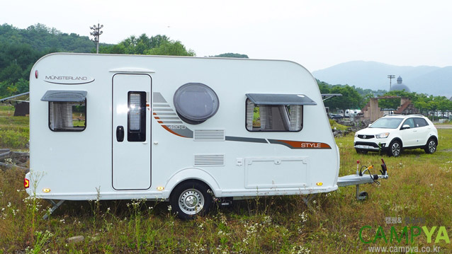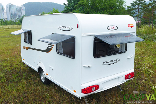 이번에 경험해 볼 수 있었던 LMC 카라반 모델은 `스타일(Style)` 계열의 420D 모델로서, 400급의 소형 모델이다. 4인 가족이 사용하기에 이상적인 모델이다. LMC 스타일 420D의 외관은 독일 태생의 깔끔함이 그대로 묻어 나온다. 순백색의 차체와 그 옆면을 수놓고 있는 간단한 데칼까지, 전반적으로 직선적이고 명료한 분위기를 가지고 있다. 하지만 차체 우측의 원형 창은 그러한 평이함 속의 재치로 작용하여 한 번 더 뒤돌아 보게 만든다. LMC 스타일 420D의 섀시 포함 전장X전폭X전고는 6,234X2,226X2,575mm이다. 소형 카라반 중에서는 사이즈가 큰 편에 속한다. 섀시는 독일 AL-KO 제품을 사용하며, 커플러의 규격 또한 유럽 사양에 맞춰 제작되어 있다. 꼼꼼한 만듦새의 외관은 인상적이다. 중저가의 소형 카라반임에도 불구하고 그 완성도와 정밀함이 만족스럽게 다가온다.