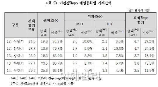 예탁원은 “단기금융시장 안정화 등을 위해 증권사의 콜차입 제한이 단계적으로 시행됨에 따라 Repo거래를 통한 자금조달 수단 이동 및 조달규모가 증가되는 추세”라고 설명했다.
