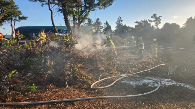 6일 제주도 소방안전본부에 따르면 김재영(55) 제주동부소방서 조천남성의용소방대장은 전날 오후 5시 48분께 제주시 조천읍의 한 과수원에서 검은 연기가 나는 것을 발견했다. 김 대장은 인근 자택에서 외출 준비를 하던 중이었다.