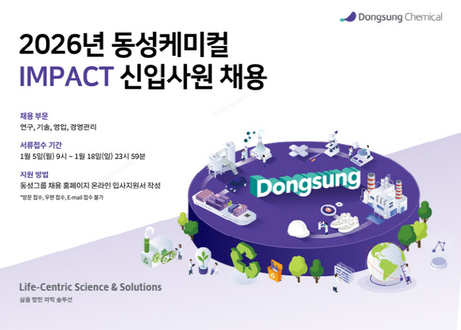 지원 대상은 4년제 대학, 대학원 기졸업자 또는 2026년 2월 졸업 예정자로 입사지원은 1월 5일부터 18일까지 동성그룹 공식 채용 홈페이지를 통해 가능하다.