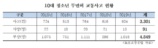 특히 이 가운데 무면허 청소년이 렌터카를 몰다가 발생한 사고는 405건, 8명이 죽고 722명이 부상자를 냈다.
