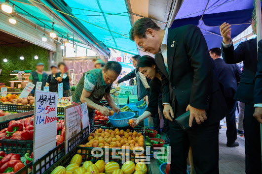 시장에서는 이 대통령과 김 여사가 식료품을 구매하며 상인들과 격의 없이 어울렸다. 물품을 비닐봉지에 직접 담아 들고 다니는 등 소탈한 모습도 보였다.