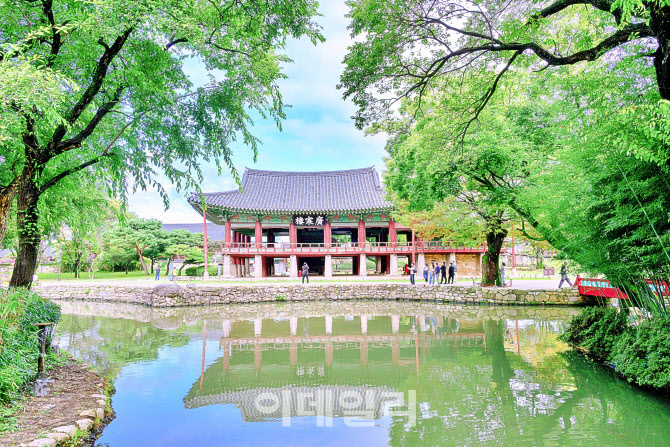 예촌의 연못가에 선 정자 ‘부용정’은 물 위의 누각이다. 잔잔한 물결이 바람에 흔들리면 지붕의 그림자가 일렁인다. 그 그림자 속에 계절이 비친다. 마루에 앉은 사람은 따로 할 일이 없다. 햇살과 바람이 그날의 풍경이 된다.