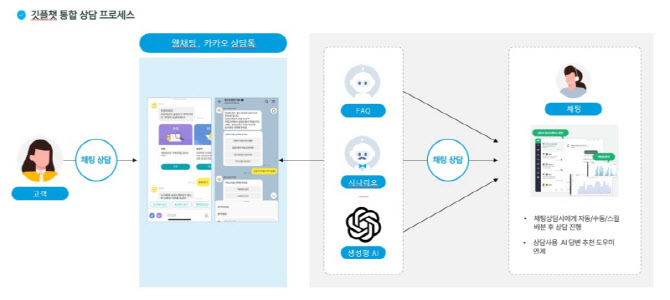 기술적 진입장벽을 낮춘 점도 주목할 만하다. 깃플챗의 시나리오봇은 ChatGPT 노드를 활용해 코딩 지식이 없는 비개발자도 생성형 AI를 쉽게 업무에 적용할 수 있다. 이와 함께 상담사 스킬 배정, 상담 전달, 귓속말 등의 협업 기능과 상담 번역, 저장된 답변 활용 등 다양한 생산성 향상 도구를 제공한다.