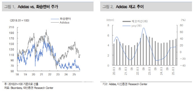 다만 그는 “2026년 6월 북중미 월드컵 개막에 맞춰 아디다스의 재고 조정이 마무리되고 본격적인 마케팅이 시작되면 내년 2분기부터 수주 증가와 마진 회복이 가능하다”고 진단했다.