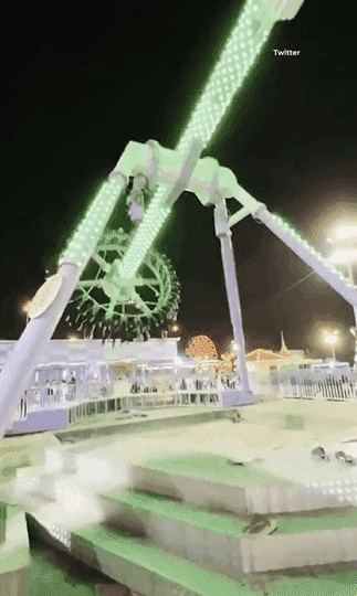 사회관계망서비스(SNS)에 올라온 현장 영상에 따르면 기구의 원형 구조물을 지탱하는 기둥이 두 동강이 나면서 반대편 구조물과 충돌한 뒤 약 10m 아래로 추락하는 장면이 담겼다.