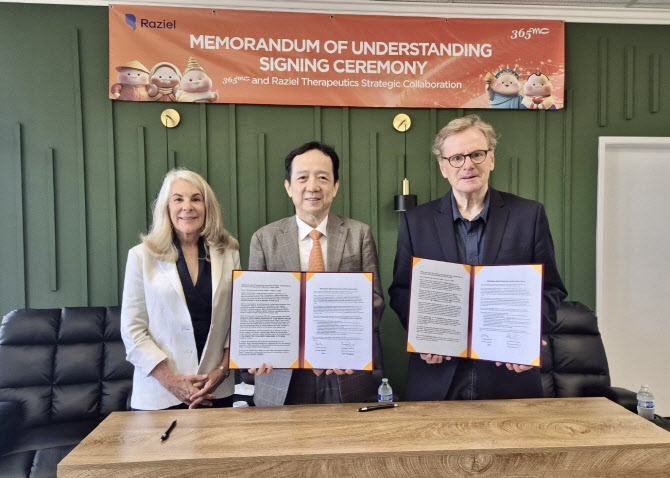 365mc가 이스라엘의 글로벌 바이오 제약사 라지엘 테라퓨틱스(Raziel Therapeutics, 이하 라지엘)와 지난 11일 미국 오렌지카운티 OC 헬스 웰니스 그룹 사옥에서 전략적 파트너십을 맺고, 차세대 체형교정 모델 개발에 착수했다고 21일 밝혔다.
