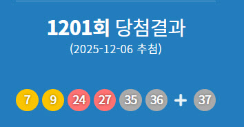 [속보]로또 1201회 당첨번호 ‘7·9·24·27·35·36’…보너스 ‘37’