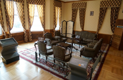 | 경교장 1층에 자리한 응접실. 이곳에서는 대한민국 임시정부의 첫 번째 국무위원회가 개최됐다. 서울시 제공 |