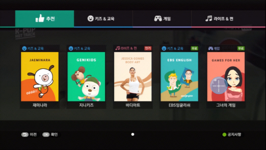 TV앱은 어린이의 교육 및 정서 함양을 위한 동화책 서비스 ‘키즈스토리’, 어린이들의 기초상식이 필요한 주제들로 구성된 인터랙티브 교육용 애니메이션 ‘지니키즈’ 등 아이들을 위한 앱부터 EBS잉글리쉬, 제시카 고메즈의 바디아트까지 성인들을 위한 앱도 구성되어 있다. 이 밖에도 추천IQ게임, 심심타파, 게임누리, 미니게임팩 등 남녀노소 모두가 즐길 수 있는 게임도 이용할 수 있다.