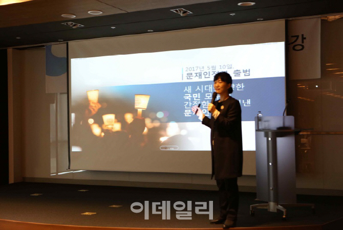 | | 정세은 충남대 교수가 지난 2일 국정철학 및 국정과제 공유 특강에 대해 강연하고 있다. HUG 제공. |