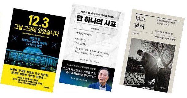 우원식 국회의장의 ‘넘고 넘어’(아시아), 박선원 더불어민주당 의원의 ‘결코 물러설 수 없다’(메디치미디어) 등 정치인이 쓴 책들도 나왔다. ‘넘고 넘어’는 비상계엄 선포 이후 우 의장이 국회 담을 넘고 계엄령 해제 결의안을 의결한 뒤 대통령 탄핵소추안 의결까지 숨가빴던 4개월을 기록한 책이다. 우 의장은 “대한민국 모두가 함께 써 내려간 민주주의의 기록”이라고 책에 적었다. 박 의원의 ‘결코 물러설 수 없다’는 국정원, 수도방위사령부, 특수전사령부 등에서 계엄 사태의 막전막후를 추적한 기록이다.