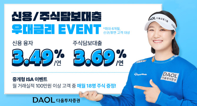 우대금리는 최대 6개월간(신청 월 포함) 신용융자는 연 3.49%, 주식담보대출은 연 3.69%가 적용된다.