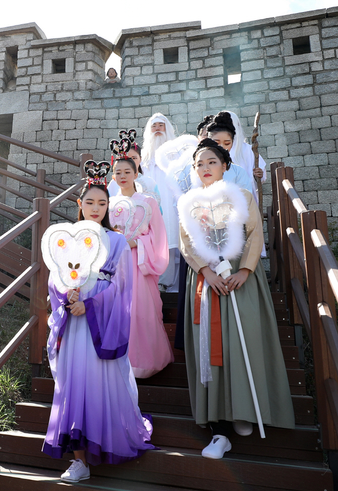 15일 오전 서울 성북구 낙산공원 일대에서 열린 '제7회 삼선동 선녀축제'에서 선녀 분장을 한 연기자들이 행진하고 있다. 선녀축제는 옥녀봉에서 기거하던 한명의 옥녀(선녀)와 하늘에서 내려온 세 명의 신선이 함께 논 곳이라는 '삼선동'의 유래를 복원해 매년 열리는 축제다. 2017.10.15/뉴스1