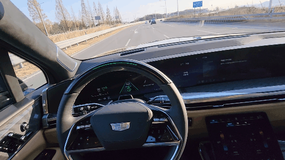 | | 캐딜락 '에스컬레이드 IQ' 슈퍼크루즈 기능이 작동하고 있다 (사진=이데일리 이배운 기자) |