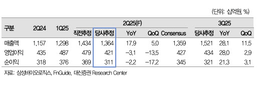 2분기 연결기준 매출액은 1조 3637억원(전년 대비 17.9%↑), 영업이익은 4211억원 (3.1%↓)으로 매출 및 영업이익은 컨센서스에 부합할 전망이라고 덧붙였다.