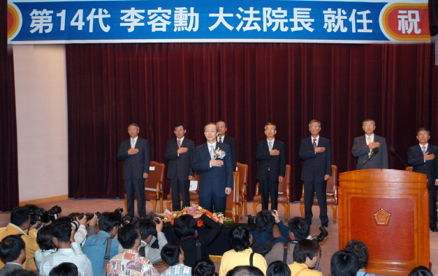 이에 앞서 이 대법원장은 이날 오전 취임식에서 "사법부가 과거의 잘못을 벗어던지고 조직과 제도개혁을 통해 새롭게 거듭나는 것만이 잃어버린 국민의 신뢰를 되찾는 유일한 길"이라고 지적했다.