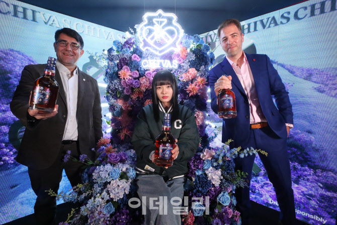 [이데일리 이영훈 기자] 프란츠 호튼 페르노리카코리아 대표이사와 미구엘 파스칼 마케팅 전무가 11일 서울 강남구 압구정에 문을 여는 팝업 스토어 '시바스 리갈 길'에서 모델과 함께 포즈를 취하고 있다.