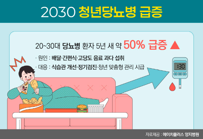 설탕과 밀가루 중심의 식습관이 청년층 당뇨 증가의 핵심 요인이며 스트레스와 불규칙한 식사시간도 혈당 조절을 어렵게 만든다.