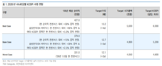 최악(Worst) 시나리오에서도 4600포인트를 상단으로 제시했고, 반도체 실적이 추가로 상향될 경우에는 6000포인트까지도 가능하다는 ‘베스트 시나리오’도 열어뒀다.