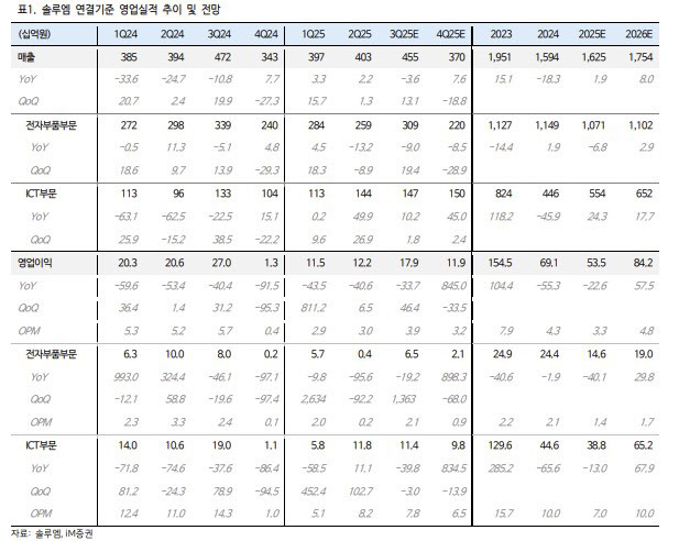 그러면서 “이는 솔루엠의 전자부품 사업이 부진한 원인 중 하나”라며 “올 3분기는 계절적 재고 확충으로 개선되겠으나 중장기 외형 성장은 정체될 것”이라고 전망했다.