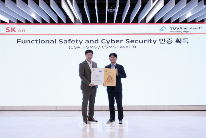 SK온은 지난 5월 국제 표준 ISO/SAE 21434 기반의 사이버 보안 관리 체계(CSMS) 레벨3 인증도 취득했다. CSMS 인증은 차량용 소프트웨어 및 전기·전자 부품의 사이버 보안 위험을 체계적으로 관리할 수 있는 역량을 갖춘 기업에 부여된다.