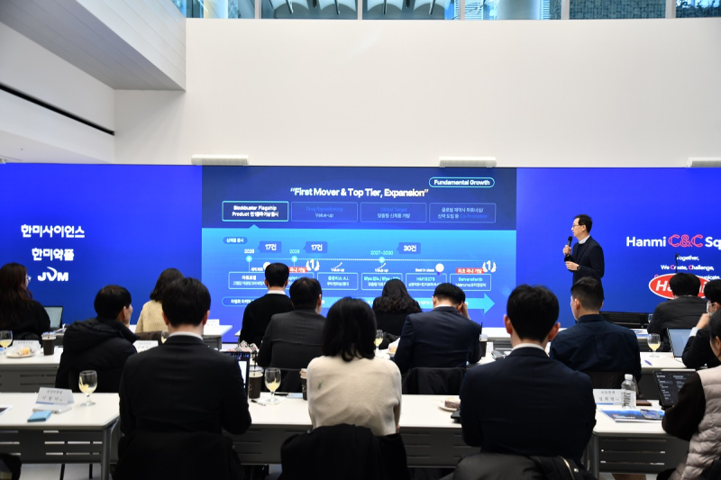 기업설명회에는 한미사이언스 대표 김재교 부회장과 한미약품 대표 박재현 사장, JVM 이동환 대표, 한미약품 R&D센터장 최인영 전무 등 전문경영인이 참석해 직접 발표했으며, 한미그룹 임주현 부회장도 함께 참석해 자리에 무게감을 더했다.