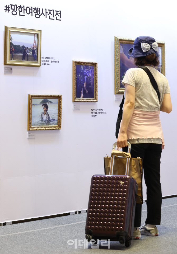 [이데일리 이영훈 기자] 여행박람회 ‘2023 올댓트래블(All That Travel 2023)'이 24일 서울 강남구 삼성동 코엑스에서 열린 가운데 참석자들이 '망한여행사진전'을 관람하고 있다.