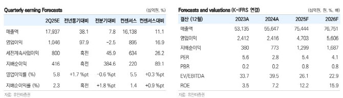 올해 2분기 연결 매출액은 17조 9000억원, 영업이익은 1조원으로 추정했다. 전년 동기 대비 각각 38.1%, 97.9% 증가한 수치다.