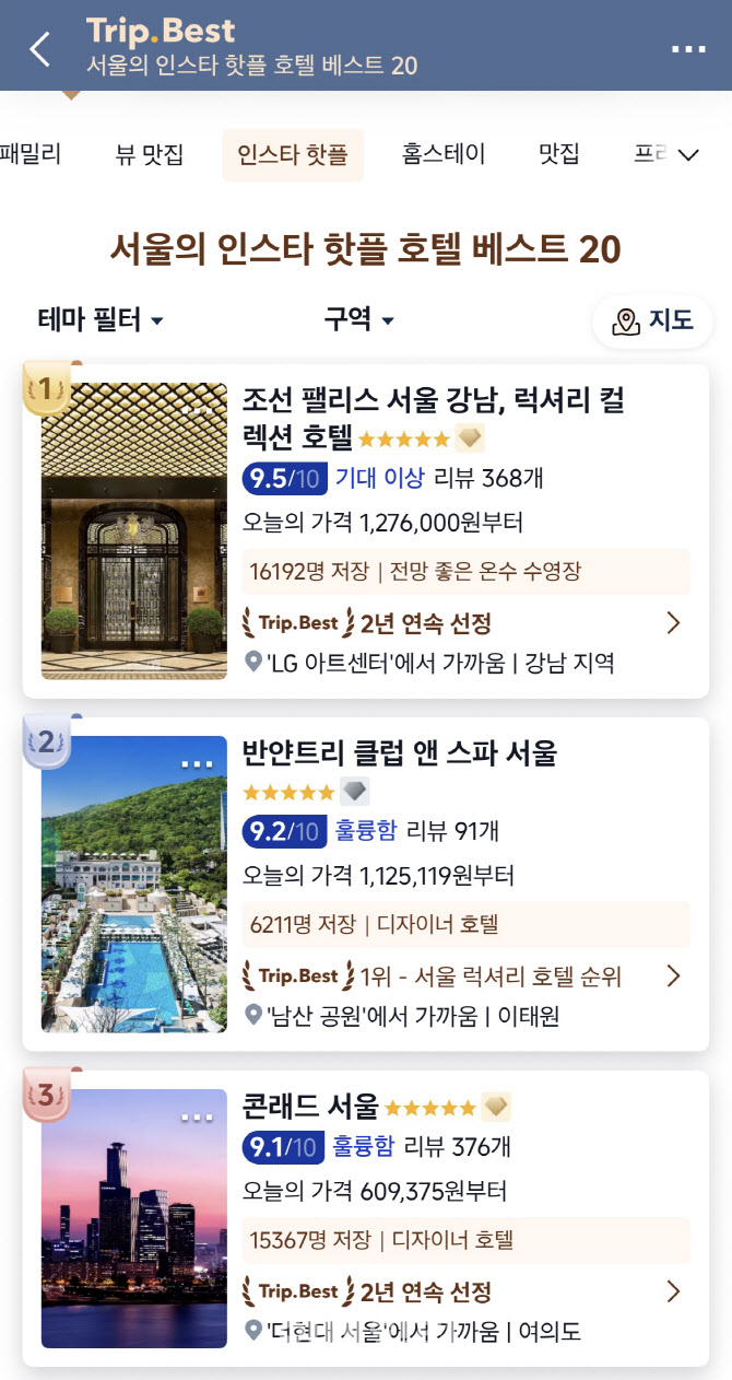 특히 트립.베스트 레스토랑 편에서는 해외여행 중 자국의 음식을 그리워하는 이들을 위한 ‘고향의 맛(Taste of Hometown)’ 카테고리가 추가돼 눈길을 끌었다. 해외여행 중에도 한식을 찾는 한국인을 위해 일본·대만·베트남·태국 등 주요 15개 도시의 한식 맛집을 추천한다. 언어 설정에 따라 일본인에겐 일식 맛집, 중국인에겐 중식 맛집이 노출되는 방식으로 맞춤형 서비스를 제공한다. 써니 순 트립닷컴 그룹 부사장은 “‘고향의 맛’ 기능은 한국, 일본, 중국, 동남아시아 지역의 이용자들에게 최초로 공개됐다“라며 “고향의 맛은 여행자가 해외에서도 익숙한 음식을 찾는 데 실질적인 도움이 될 것”이라고 말했다.