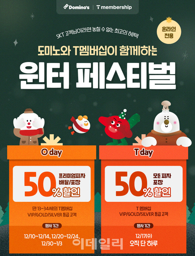 [이데일리 신수정 기자] 도미노피자는 SK텔레콤 T멤버십 고객을 위한 ‘윈터 페스티벌’을 진행한다고 8일 밝혔다.