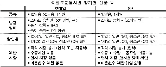 SRT의 경우, 사전에 정해진 구간의 열차를 10회 이용할 수 있는 입석용 정기권을 도입한다.